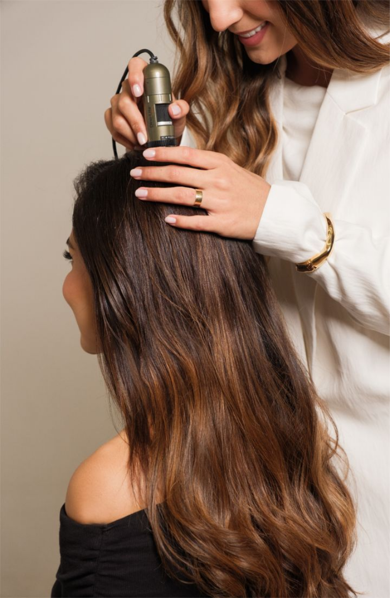 - Evaluación detallada del cuero cabelludo y la hebra capilar